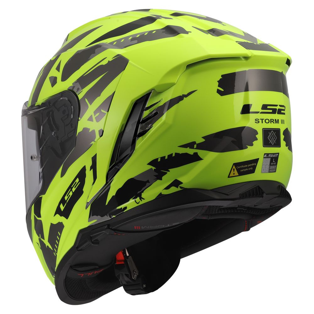 LS2 FF818 Storm 3 is a touring-urban helmet constructed with a KPA (Kinetic Polymer Alloy) shell for lightweight protection. It features a Max Vision visor with Pinlock® 70 MaxVision™ anti-fog insert included, and an integrated sun visor with an easy-remove system. The ventilation system includes top and chin vents with transparent components, channeled EPS, and exhaust ports. A micrometric buckle, emergency release system, and magnetic chin curtain are standard.