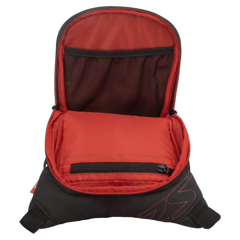 - Rear elastic mesh pocket inside the main compartment.